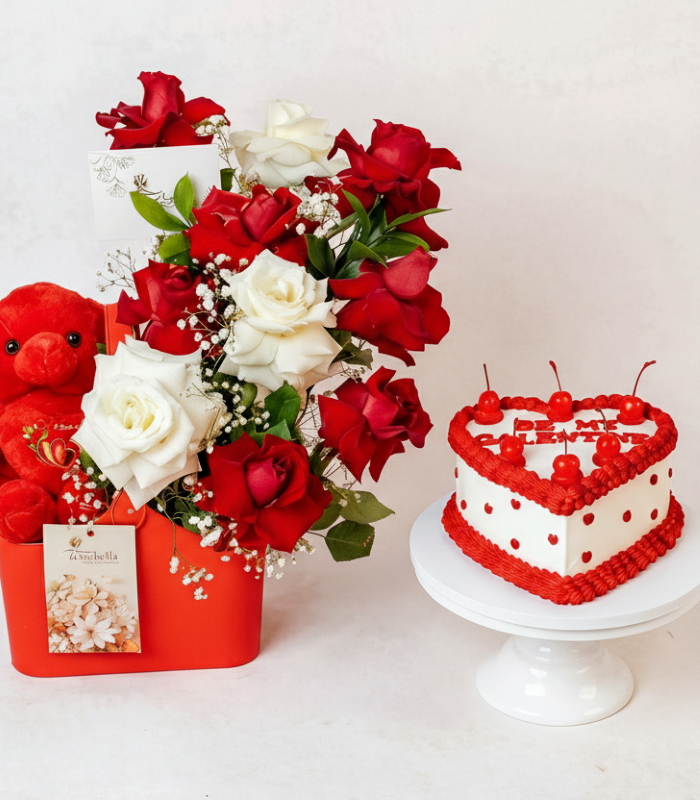 Rose Box with Cake & Teddy